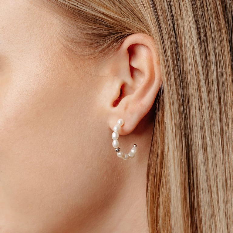• Perlenohrringe in Form von Kreisen, die einen bequemen Puzette -Verschluss haben