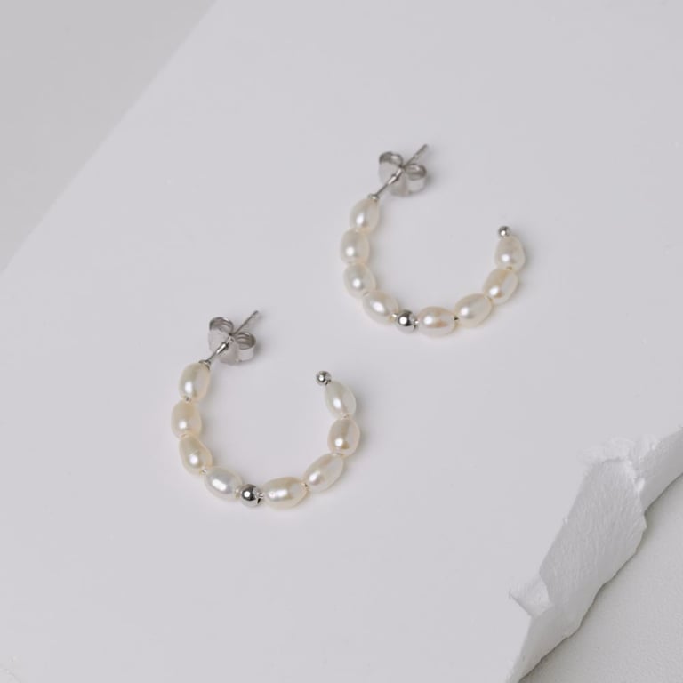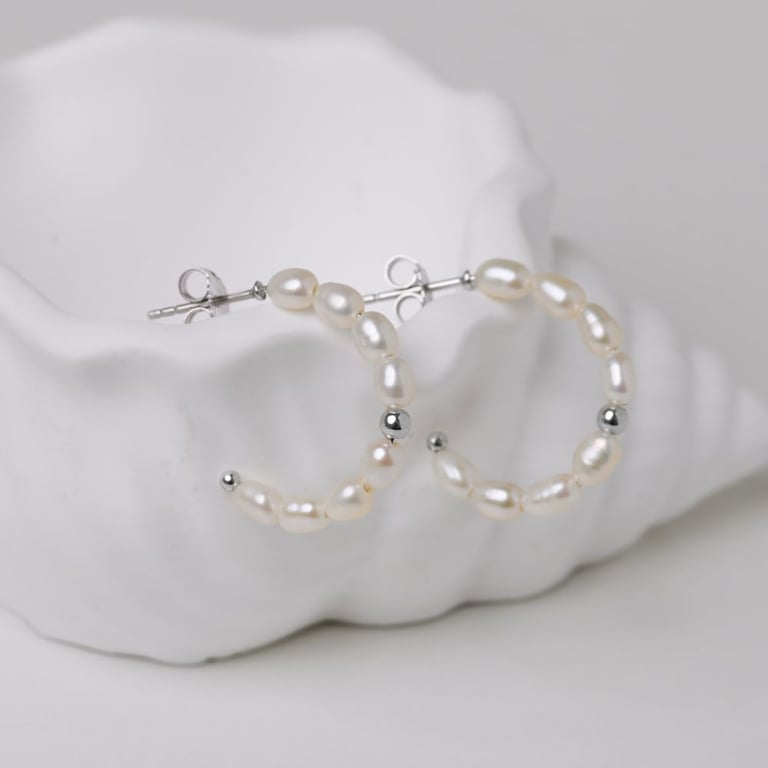 Silberne runde Ohrringe mit Perlen Roxanne