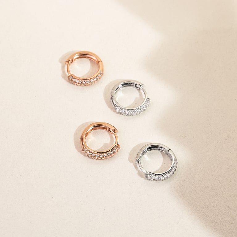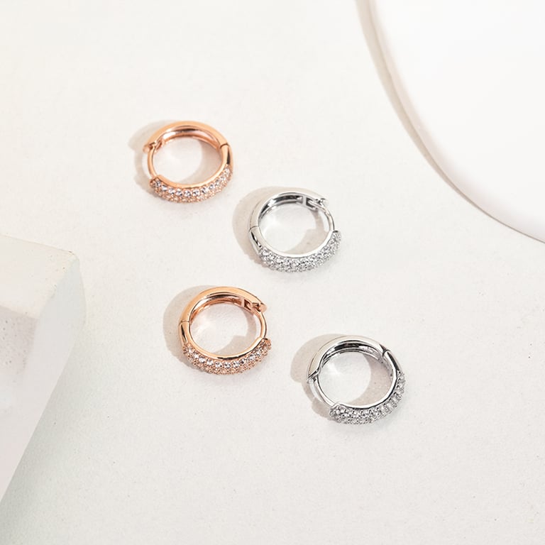 Silberne runde Pavé-Ohrringe mit weißen Topasen Shaviv