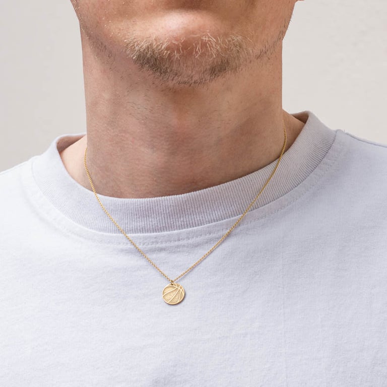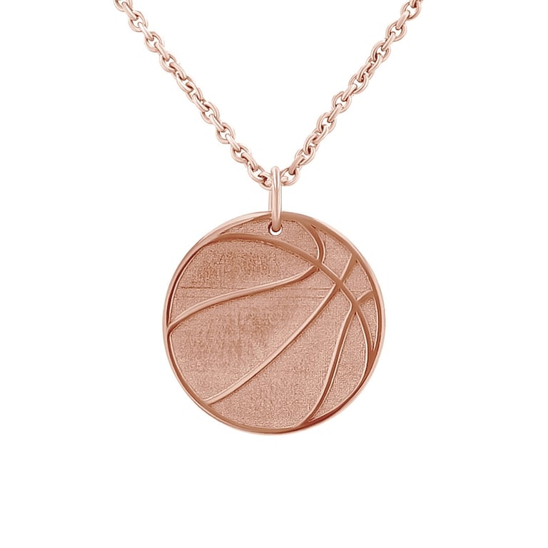 • Anhänger mit einem Basketball-Motiv, auf dessen Rückseite Platz für eine individuelle Gravur ist