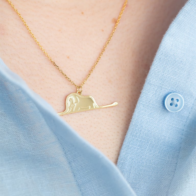 • das Schmuckstück ist mit einer präzisen Gravur des im Buch vorkommenden Bildes von einem Elefanten in einer Schlange verziert
