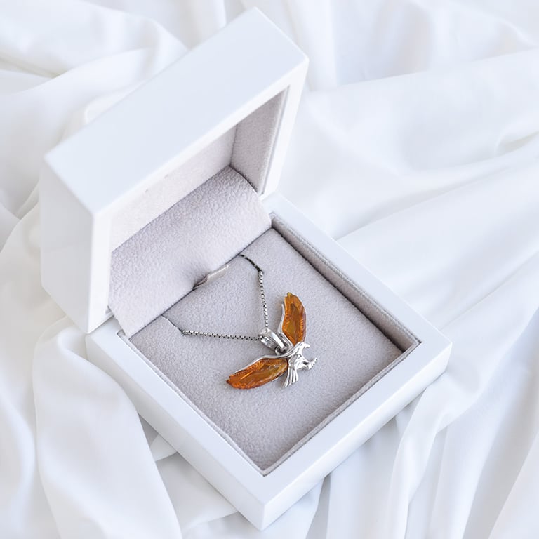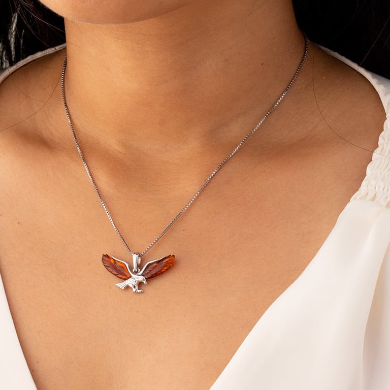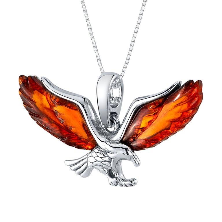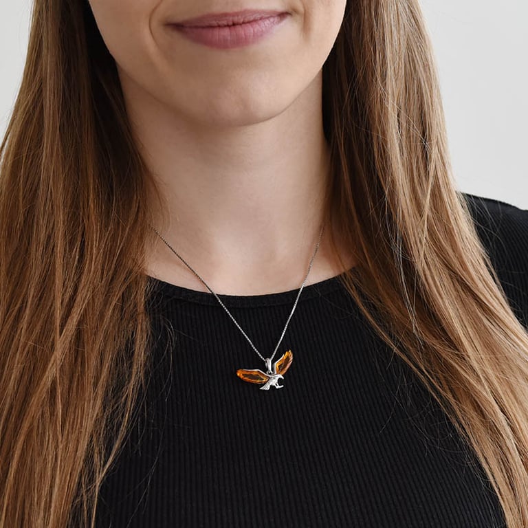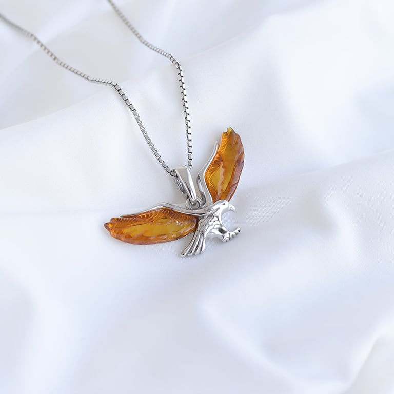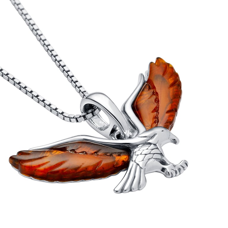 Silberner Anhänger in Form eines Adlers mit Bernsteinen Tercia