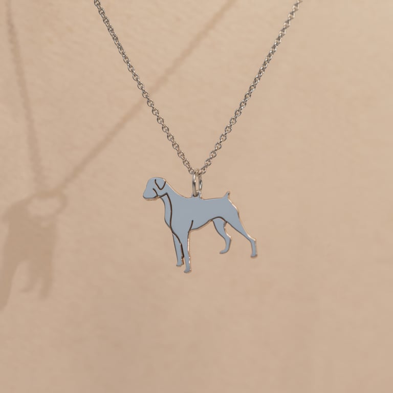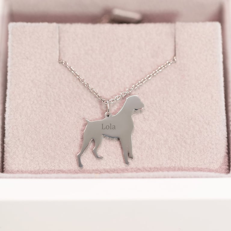 Silberner Anhänger in Form eines Hundes mit Gravur Boxer