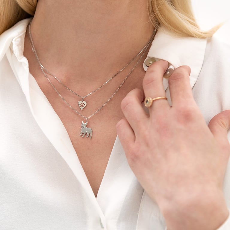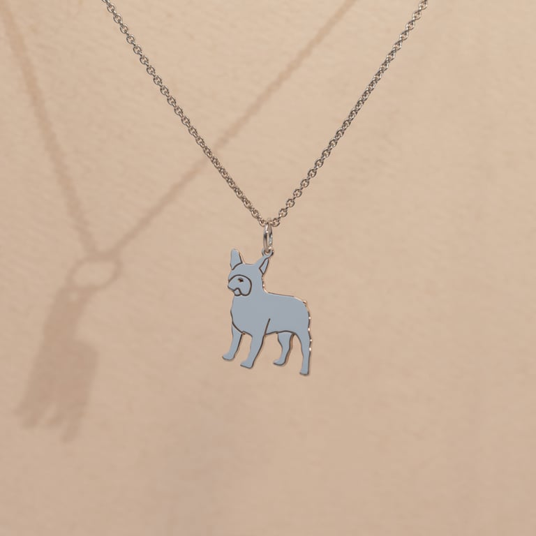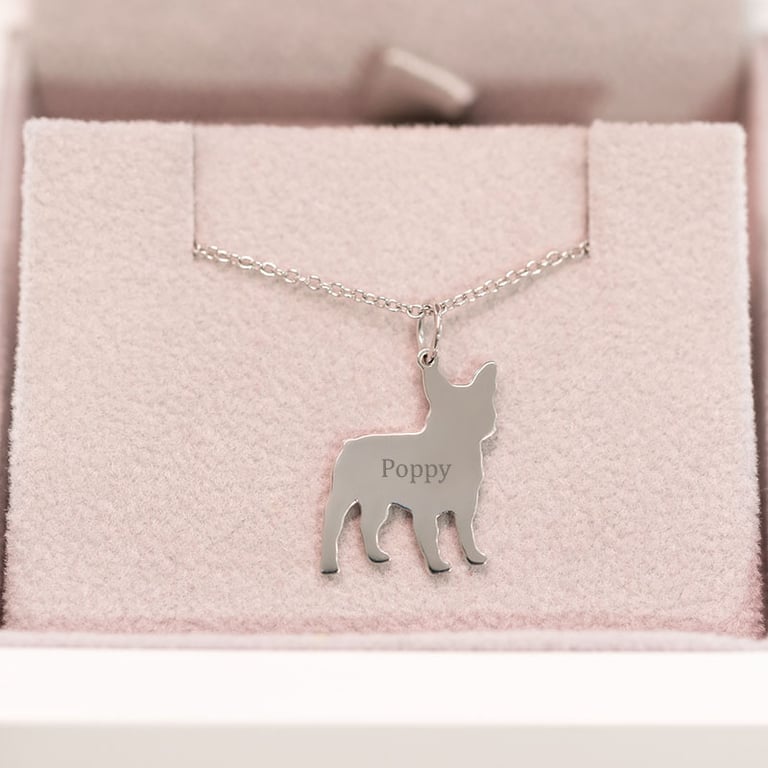 Silberner Anhänger in Form eines Hundes mit Gravur French Bulldog