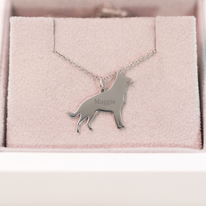 Silberner Anhänger in Form eines Hundes mit Gravur German Shepherd