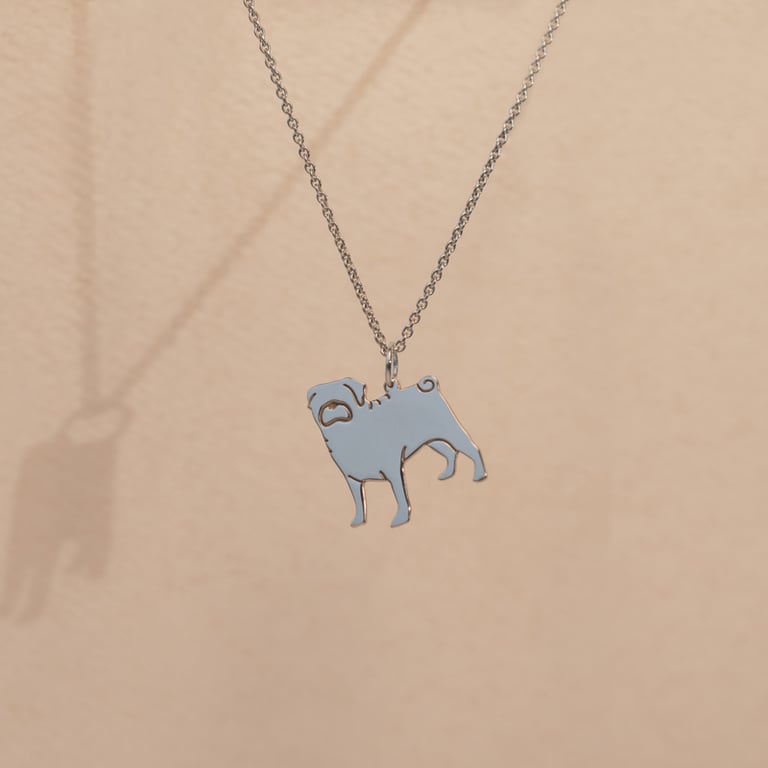 Silberner Anhänger in Form eines Hundes mit Gravur Pug