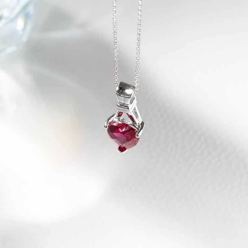• bei diesem Silberanhänger ist der herzförmige Rubin mit roten und purpur Farbreflexen Liebe pur