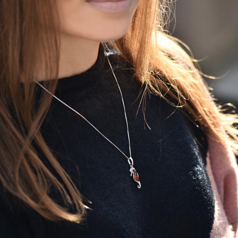 • Silberschmuck mit einem niedlichen Anhänger in Form eines Seepferdchen