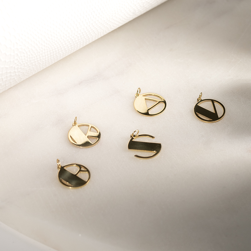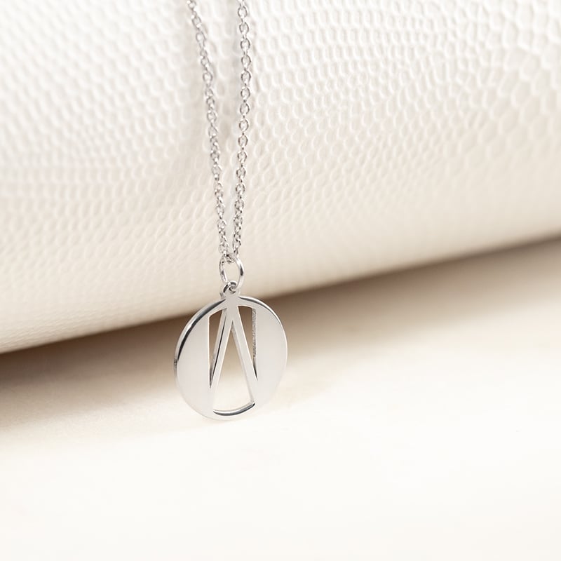 • runder Anhänger, verziert mit dem Motiv eines ausgeschnittenen Buchstabens Ihrer Wahl