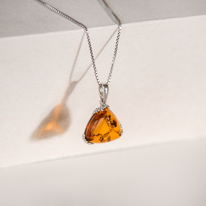 Silberner Anhänger mit Bernstein und Blumendetails Manal