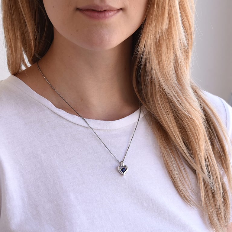 Silberner Anhänger mit blauem Saphir als Herzmotiv Lovelyn