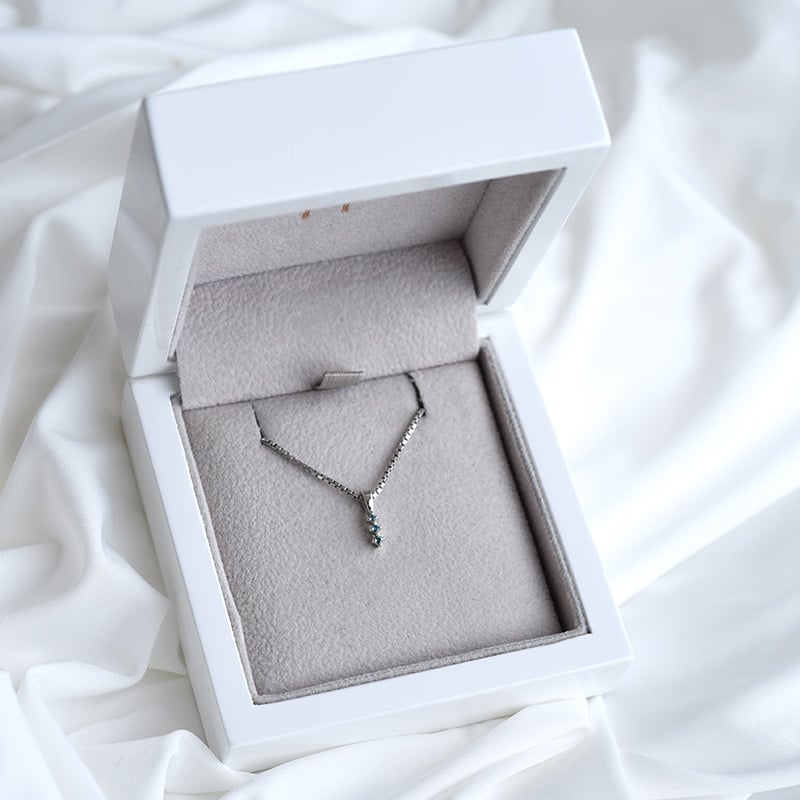 • der blaue Farbton der Diamanten passt zu jedem Hauttyp