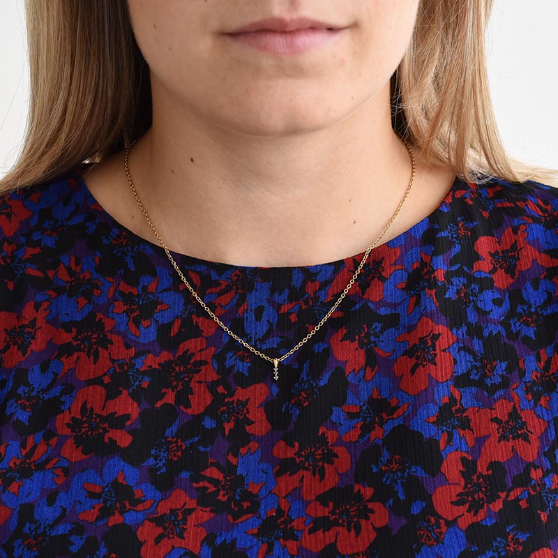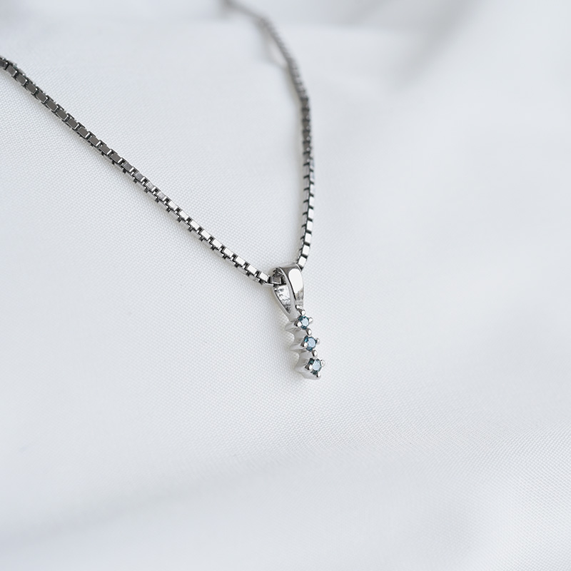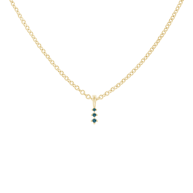 • den Anhänger schmückt ein Trio aus runden Diamanten