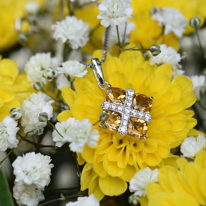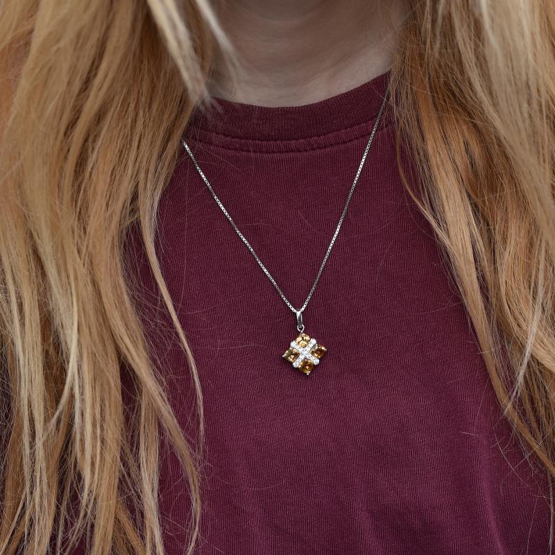 • vier runde Citrine werden mit einem Kreuz aus Zirkonia unterteilt, die zusammen ein unglaubliches Feuer entfachen