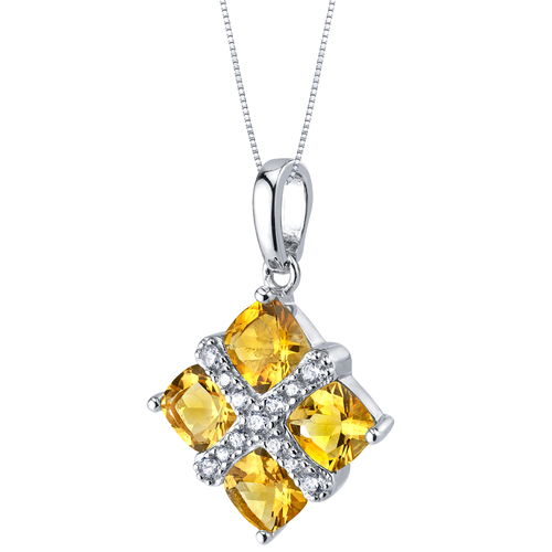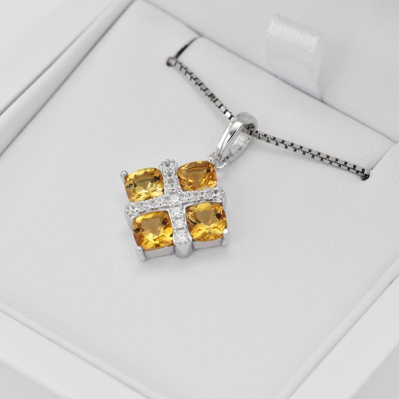 • bei diesem quadratischen Silberanhänger funkeln zitronengelbe Citrine mit Zirkonia um die Wette