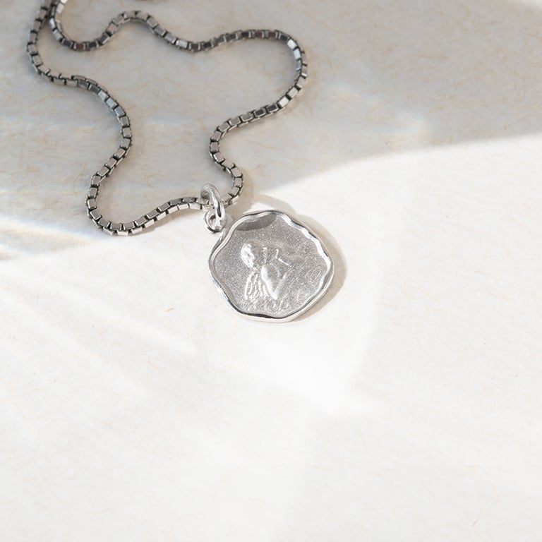Silberner Anhänger mit dem Engelssymbol Raguel
