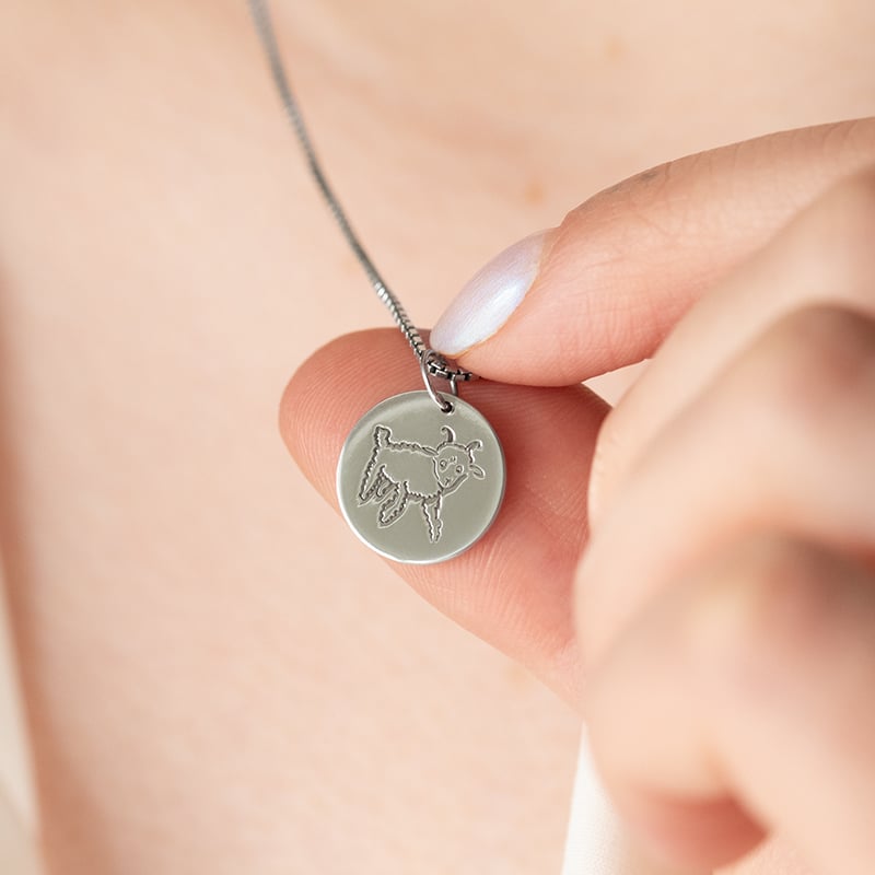 Silberner Anhänger mit der Gravur eines Lamms Der Kleine Prinz