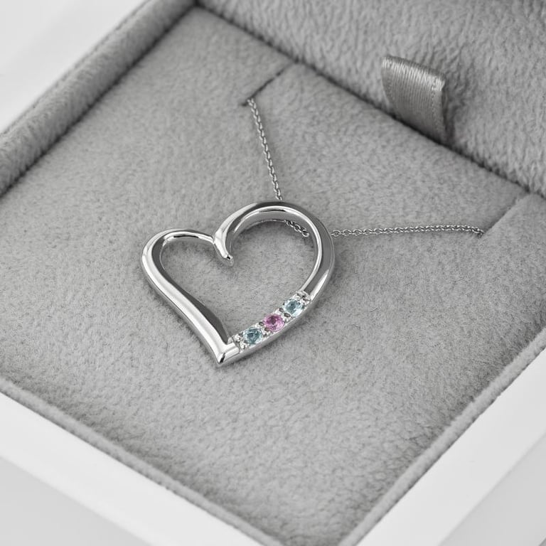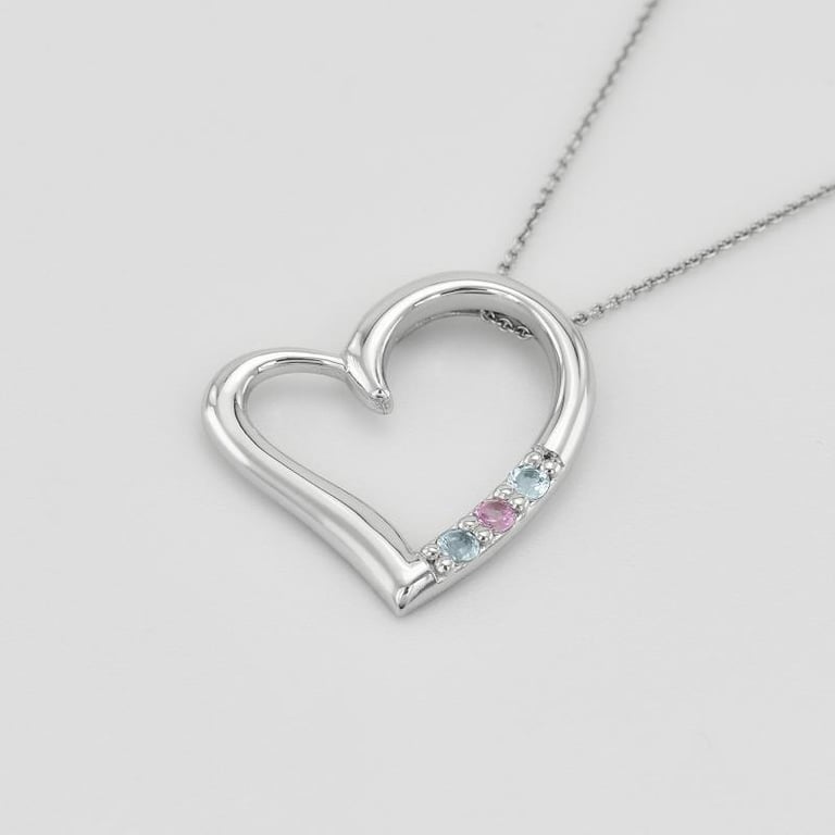 Silberner Anhänger mit einem Herzen mit Aquamarinen und einem rosa Saphir Tanish