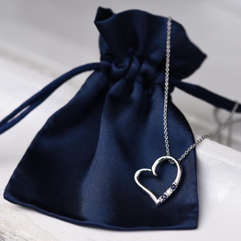 Silberner Anhänger mit einem Herzen mit Saphiren und einem Diamanten Tanish
