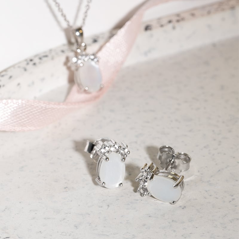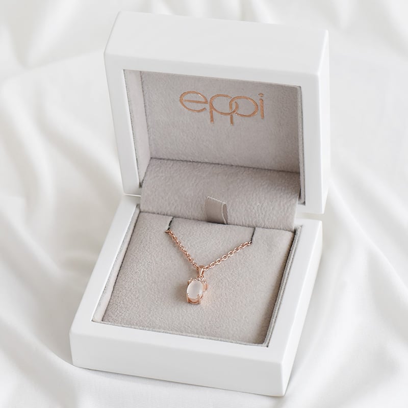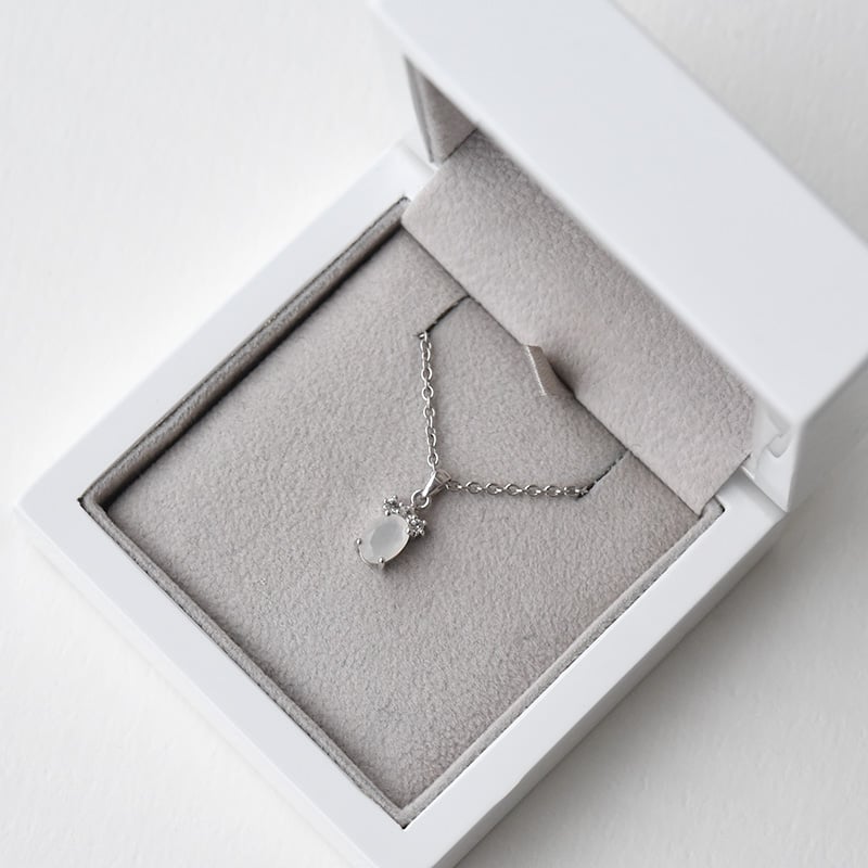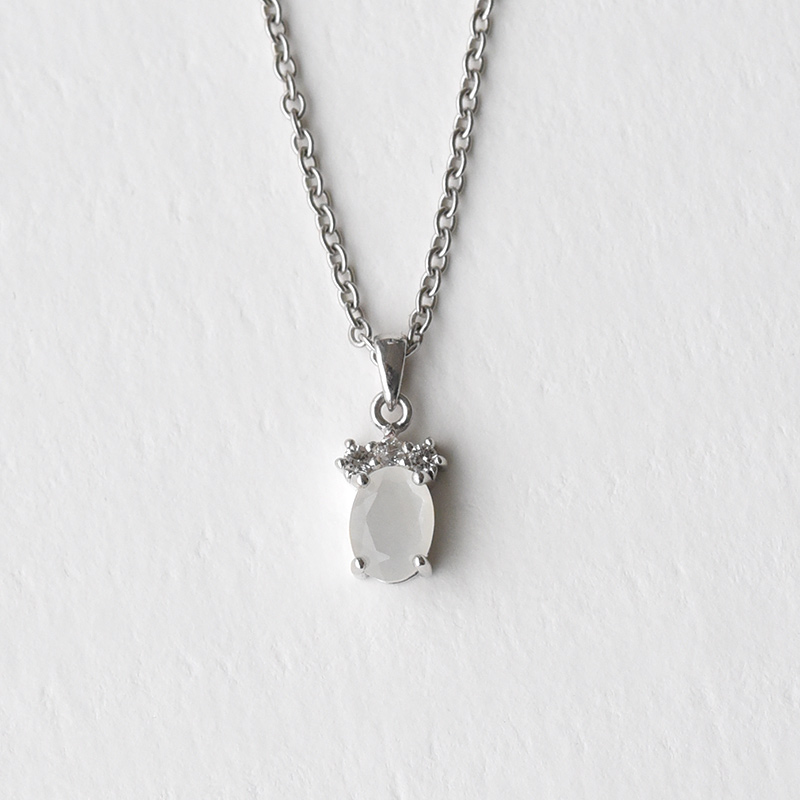 • silberne Halskette mit Mondstein und weißen Topasen