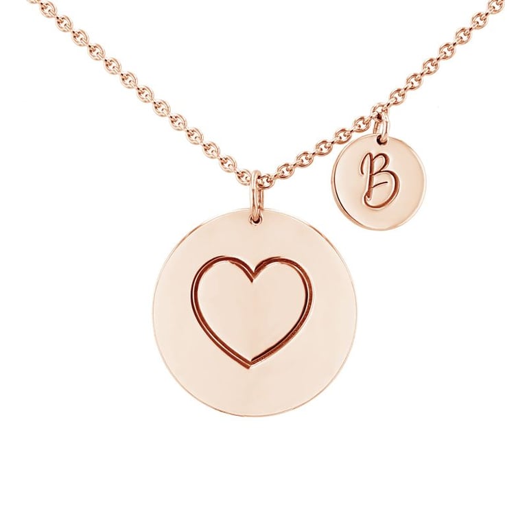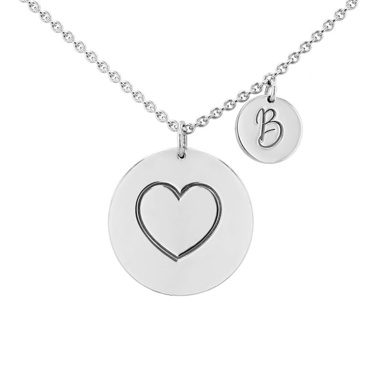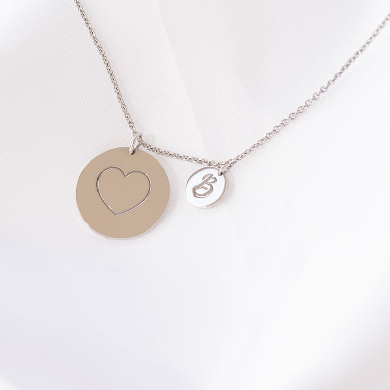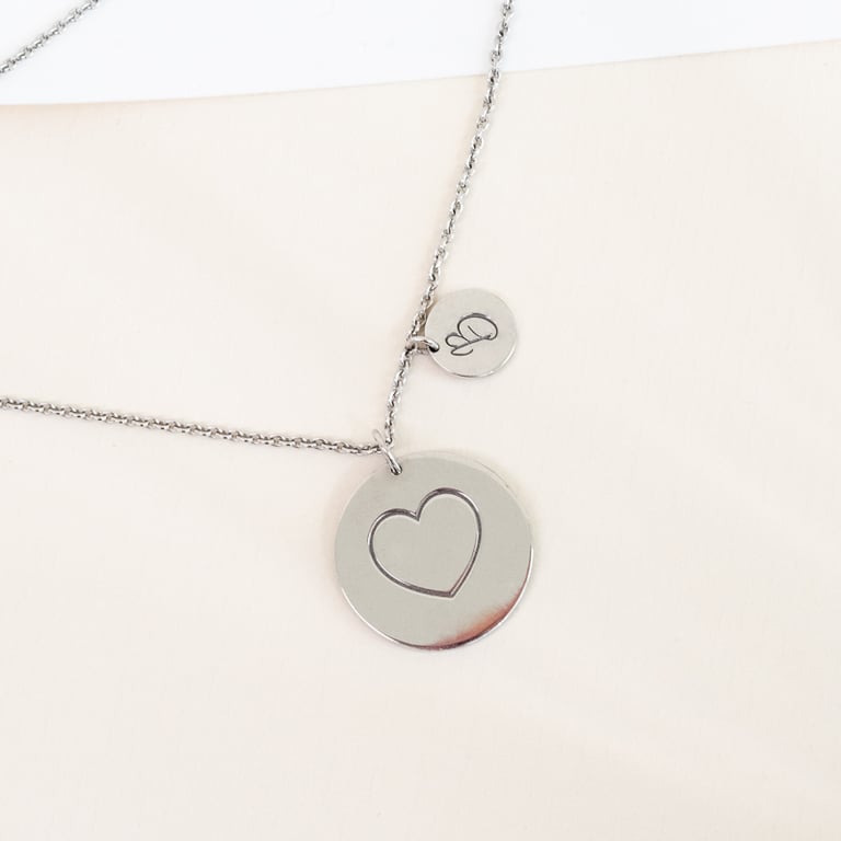 Silberner Anhänger mit Herz und Gravur eines Buchstabens Kadie