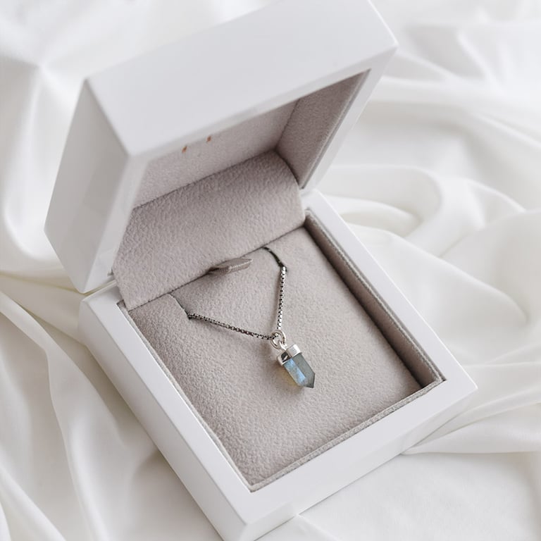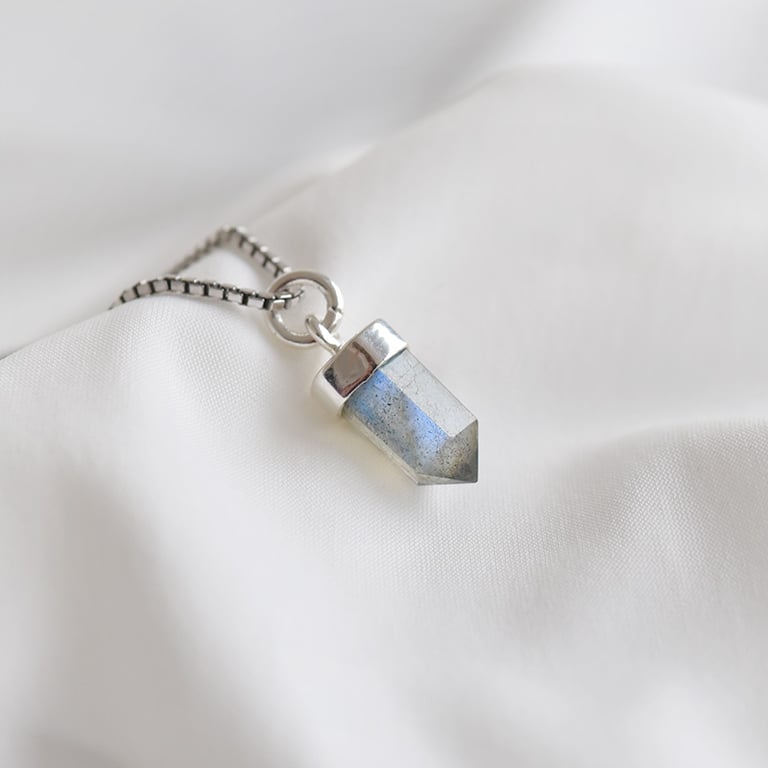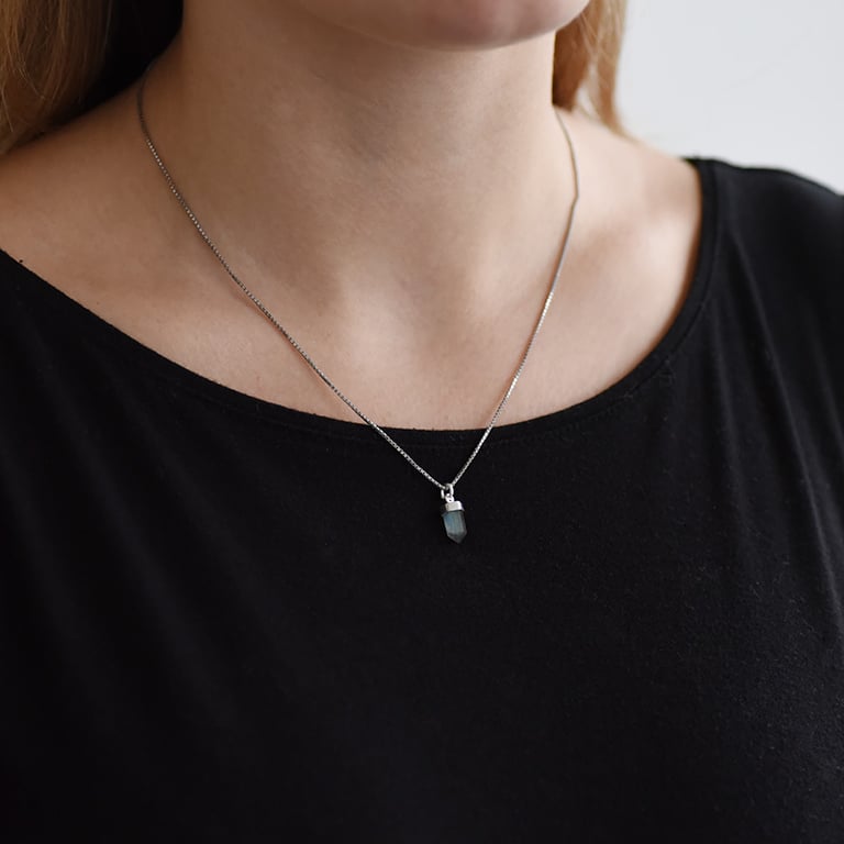 • ein origineller Anhänger mit einem Labradorit in Kristallform geschliffen