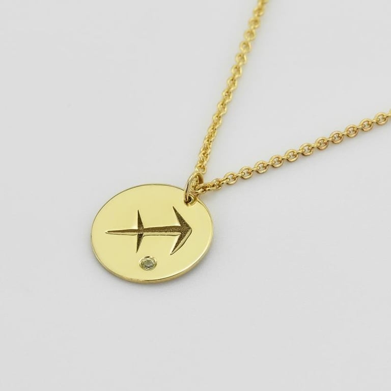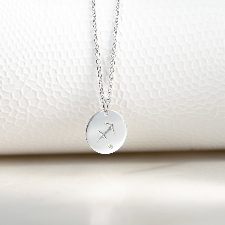Silberner Anhänger mit Olivin und Sternzeichen Schütze