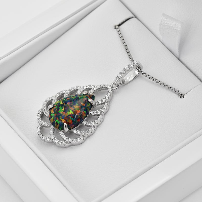 Silberner Anhänger mit schwarzem Opal und Zirkonia Sakia