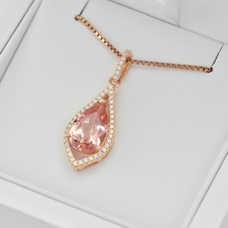• der tränenförmige Morganit ist mit seinem speziellen Pfirsichton ein interessanter Kontrast zum vergoldeten Silber und wird durch die Zirkonia zum Strahlen gebracht