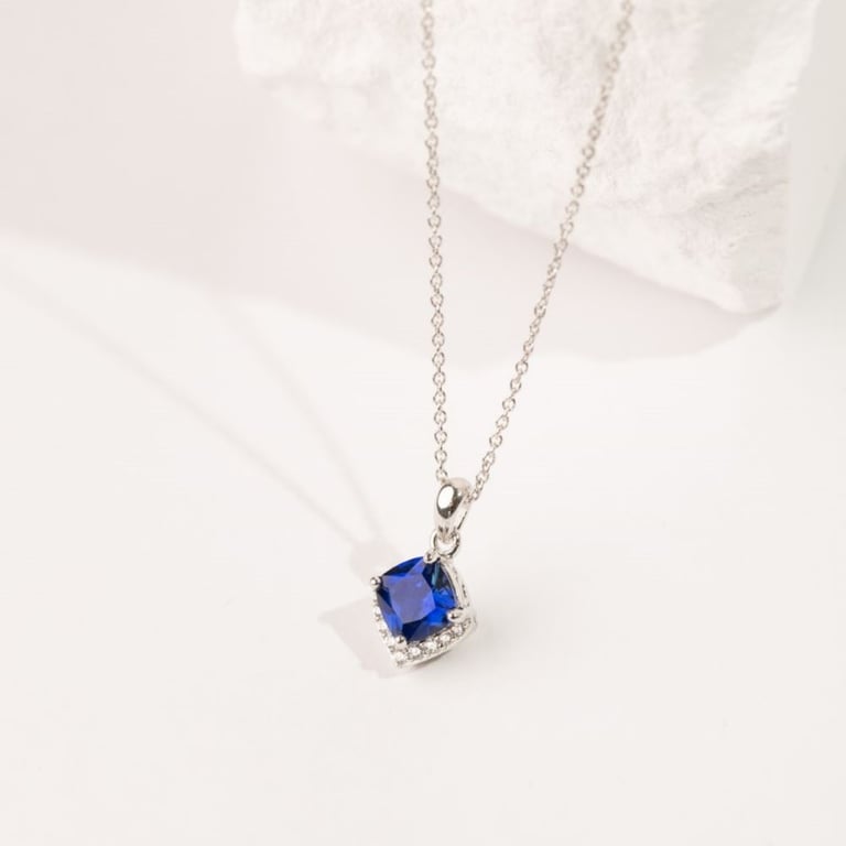 • der elegante silberne Anhänger mit einem tiefen Saphir verleiht Ihrem Look zeitlose Eleganz und raffinierten Charme