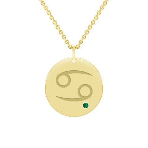 Silberner Anhänger mit Smaragd und Sternzeichen Krebs