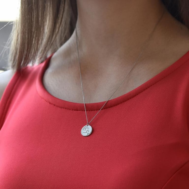 • ein Schmuck aus recyceltem Silber mit der Gravur des Sternzeichens Krebs