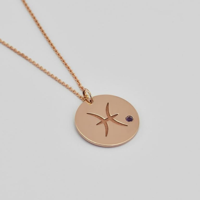 Silberner Anhänger mit Sternzeichen und Amethyst Fische