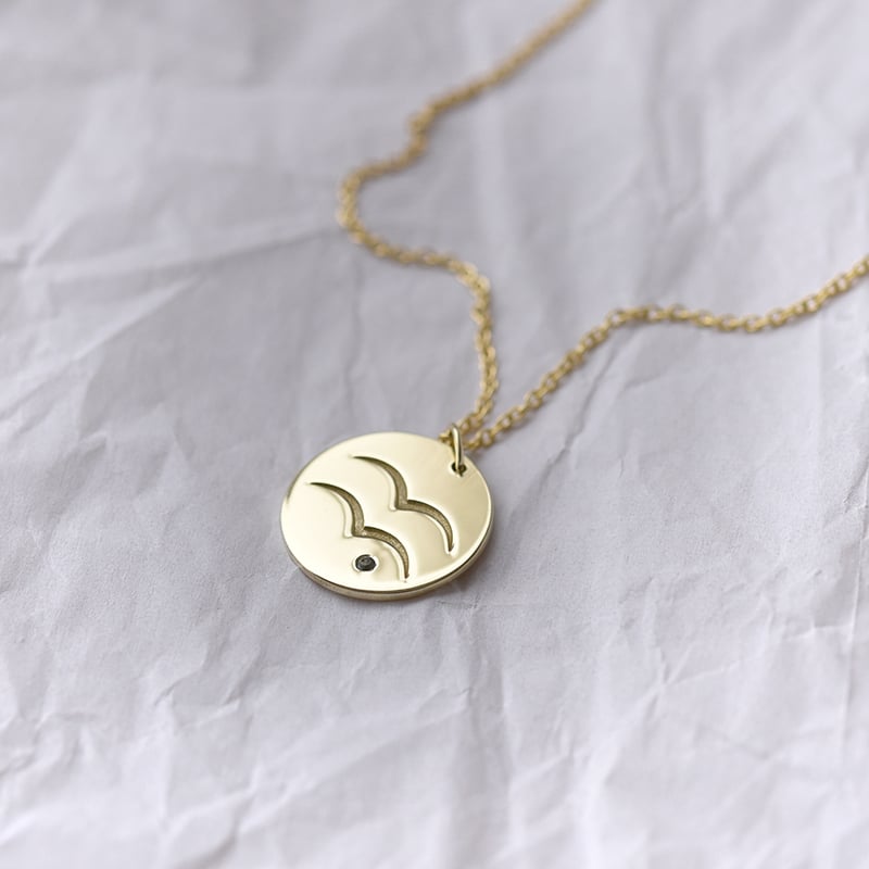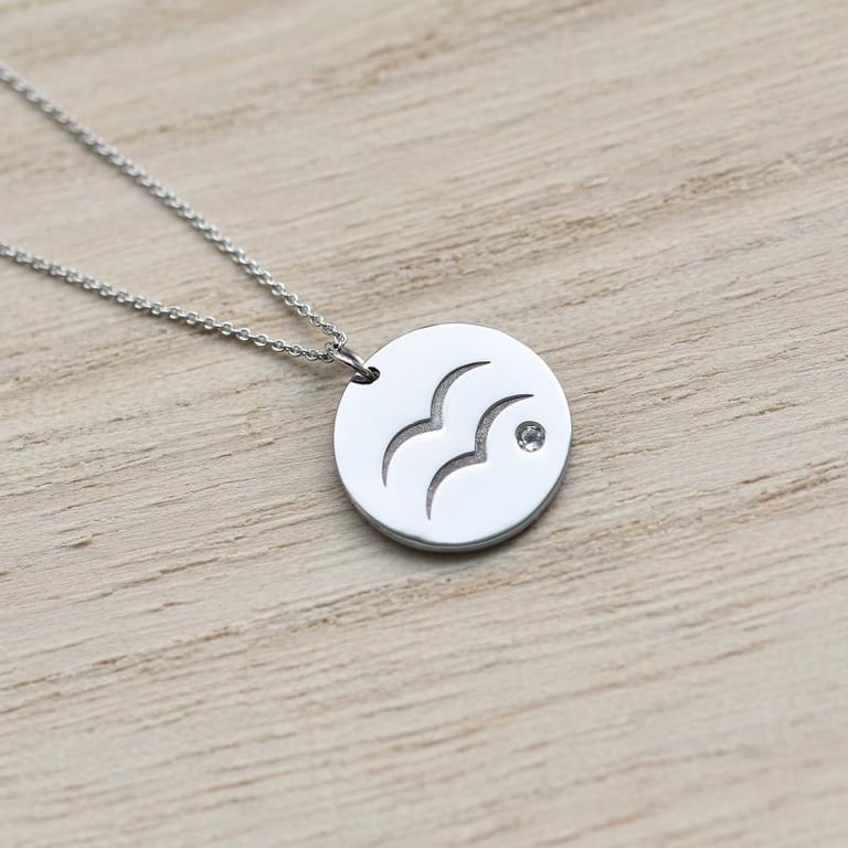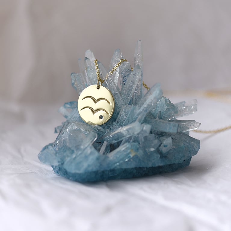 • Anhänger aus recyceltem Silber mit der Möglichkeit der Vergoldung und der Gravur dieses Luftzeichens