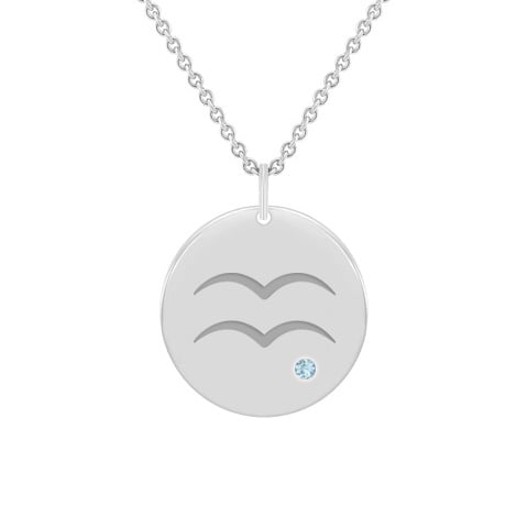 Silberner Anhänger mit Sternzeichen und Aquamarin Wassermann
