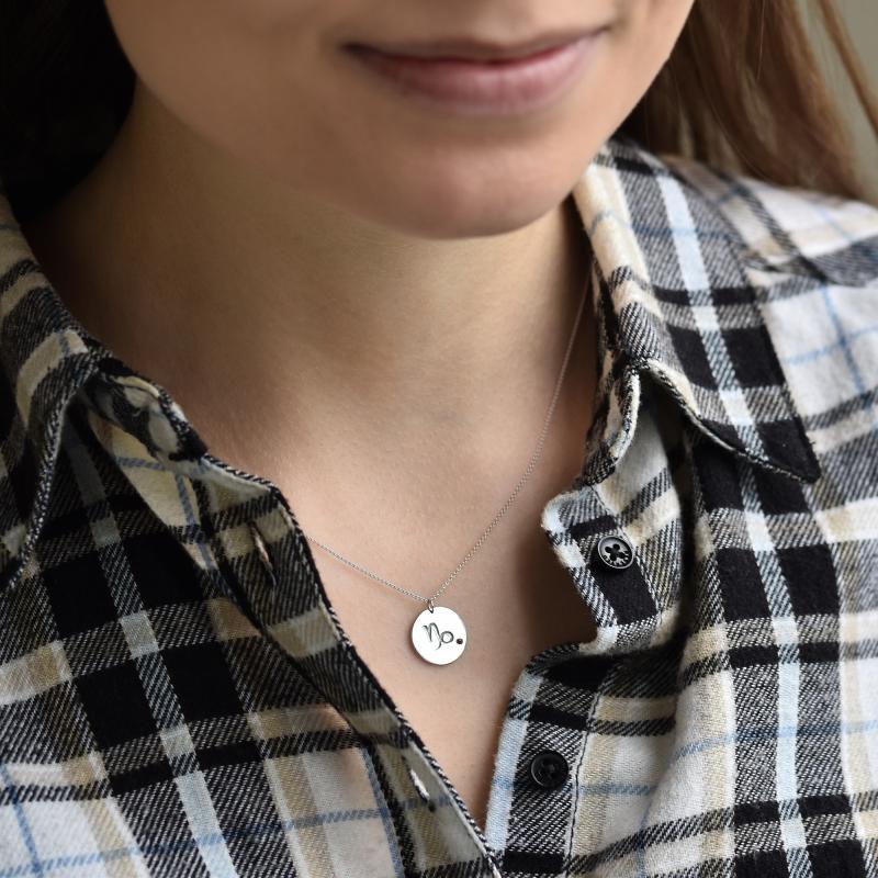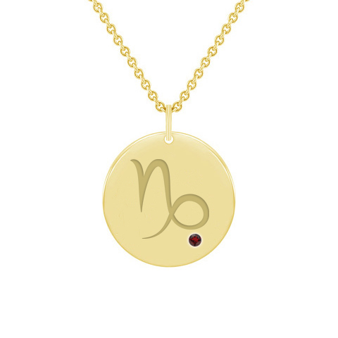 Silberner Anhänger mit Sternzeichen und Granat Steinbock