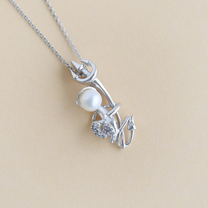 Silberner Anhänger mit Teufelchen und einer Perle und Lab Grown Diamanten Devil