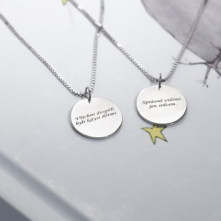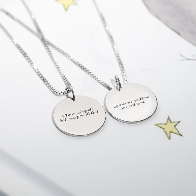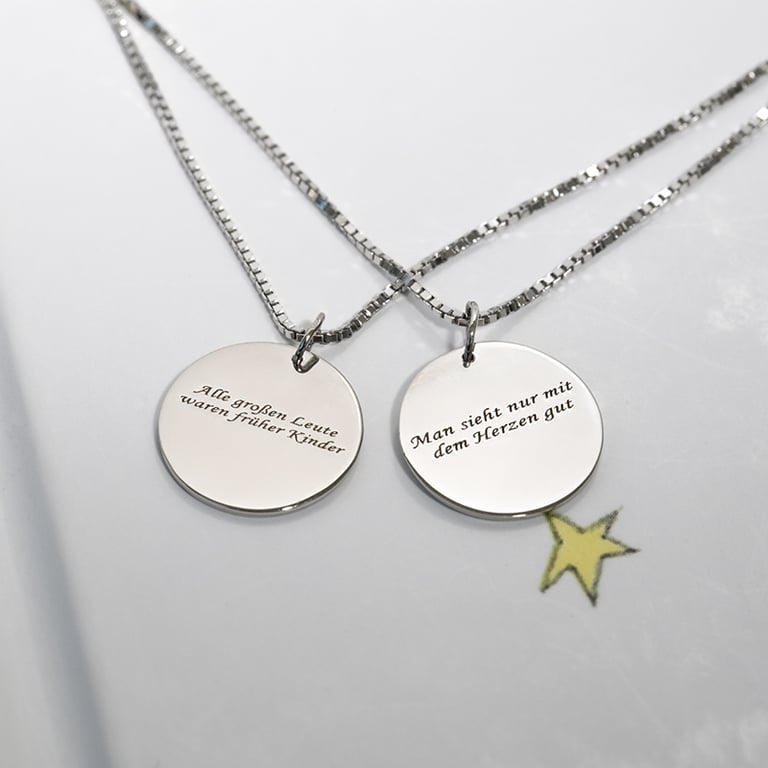 Silberner Anhänger mit verschiedenen Zitaten Der Kleine Prinz und der Fuchs