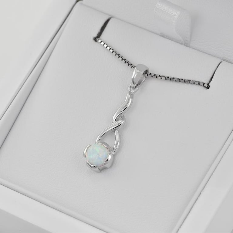• der runde Opal changiert in allen Regebogenfarben, und er hängt an raffiniert geschlungenen Silberschnüren