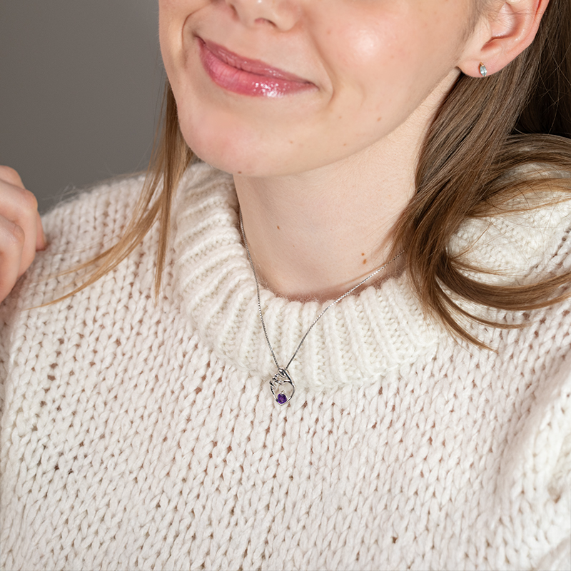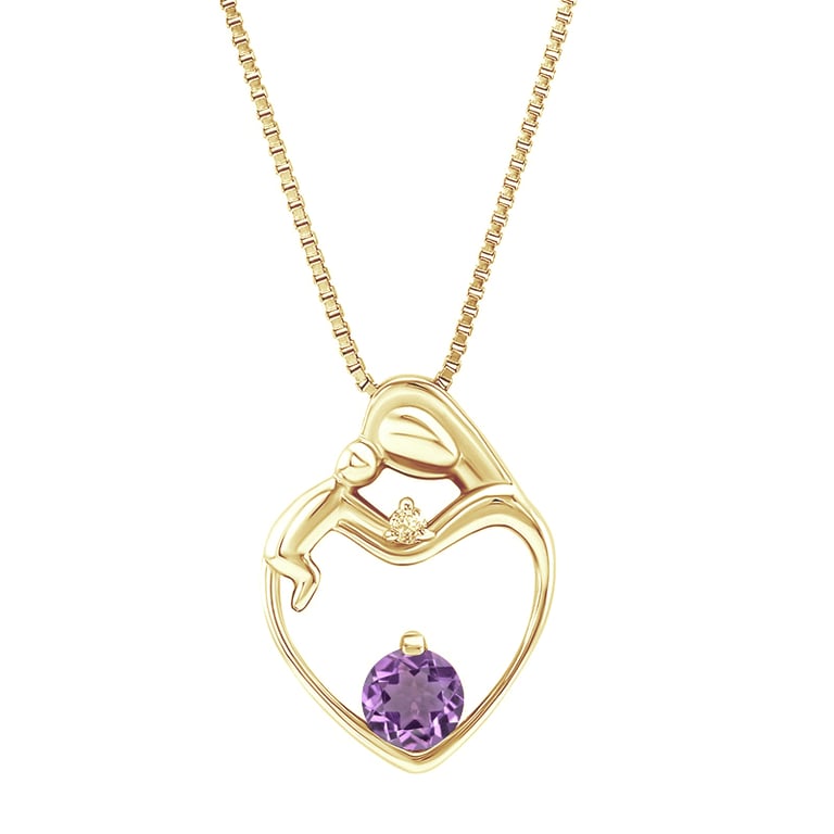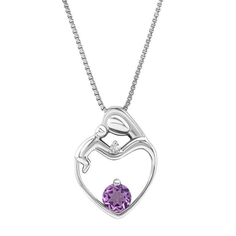 Silberner Anhänger Mutter und Kind mit Amethyst und Diamant Ella