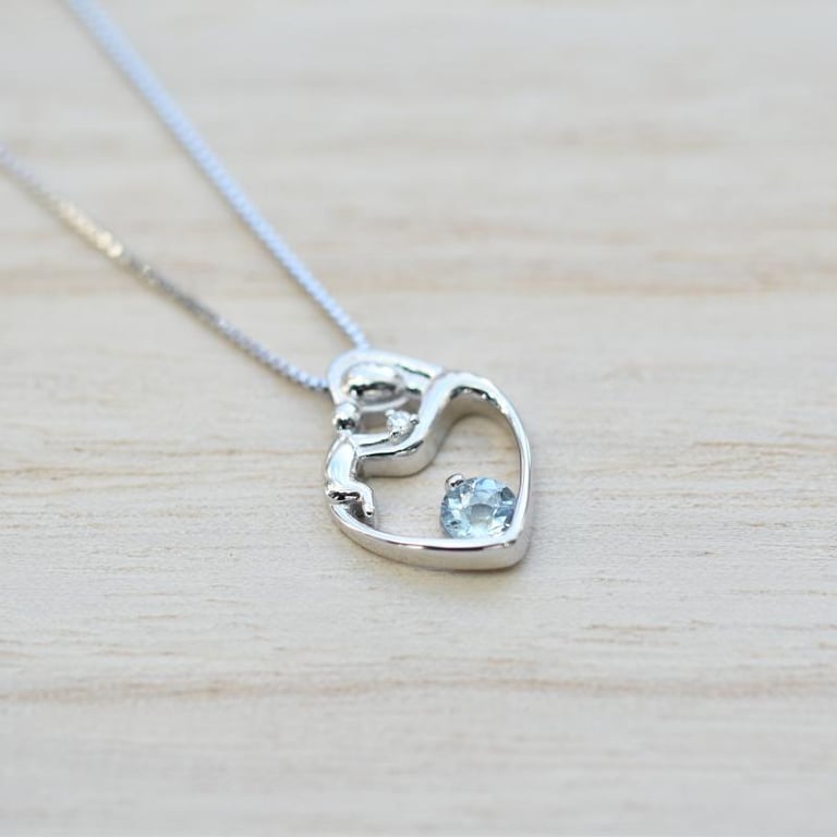 Silberner Anhänger Mutter und Kind mit Aquamarin und Diamant Ella