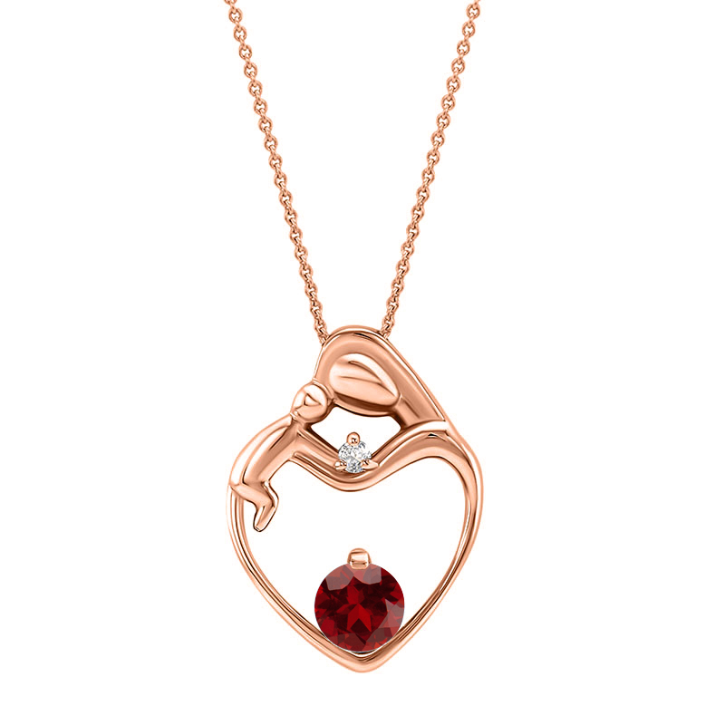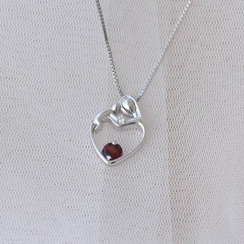 Silberner Anhänger Mutter und Kind mit Granat und Diamant Ella