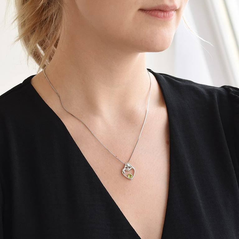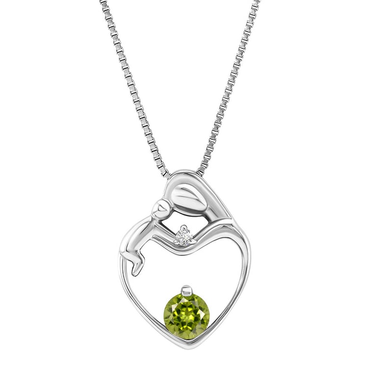 Silberner Anhänger Mutter und Kind mit Olivin und Diamant Ella