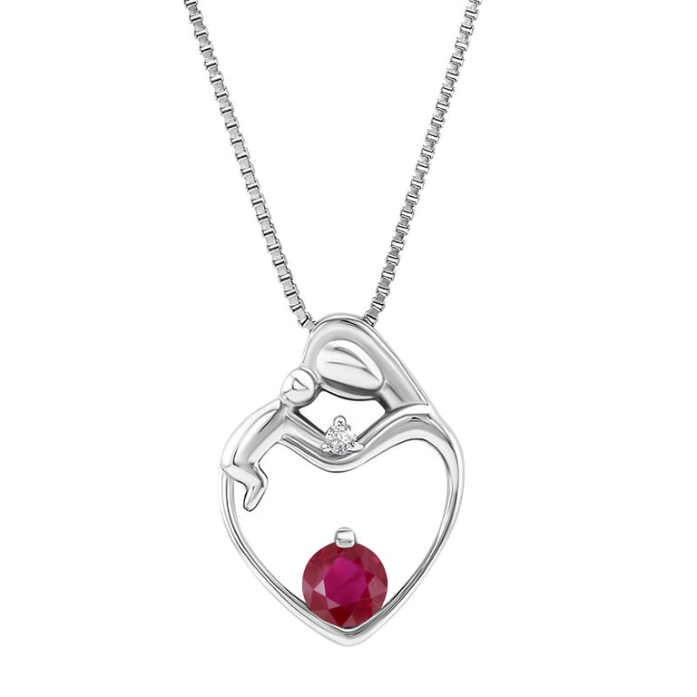 Silberner Anhänger Mutter und Kind mit Rubin und Diamant Ella
