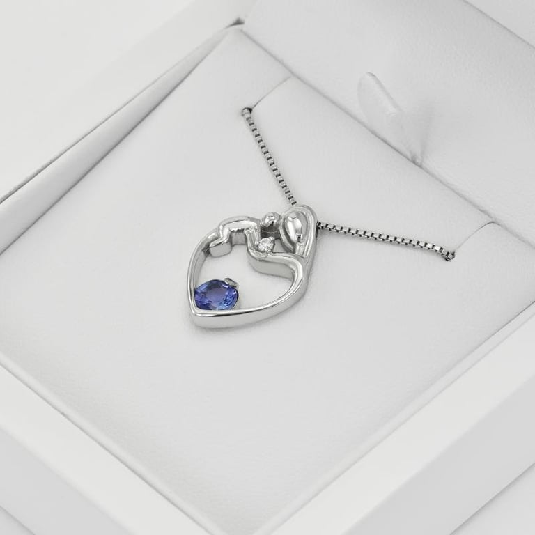 Silberner Anhänger Mutter und Kind mit Tansanit und Diamant Ella