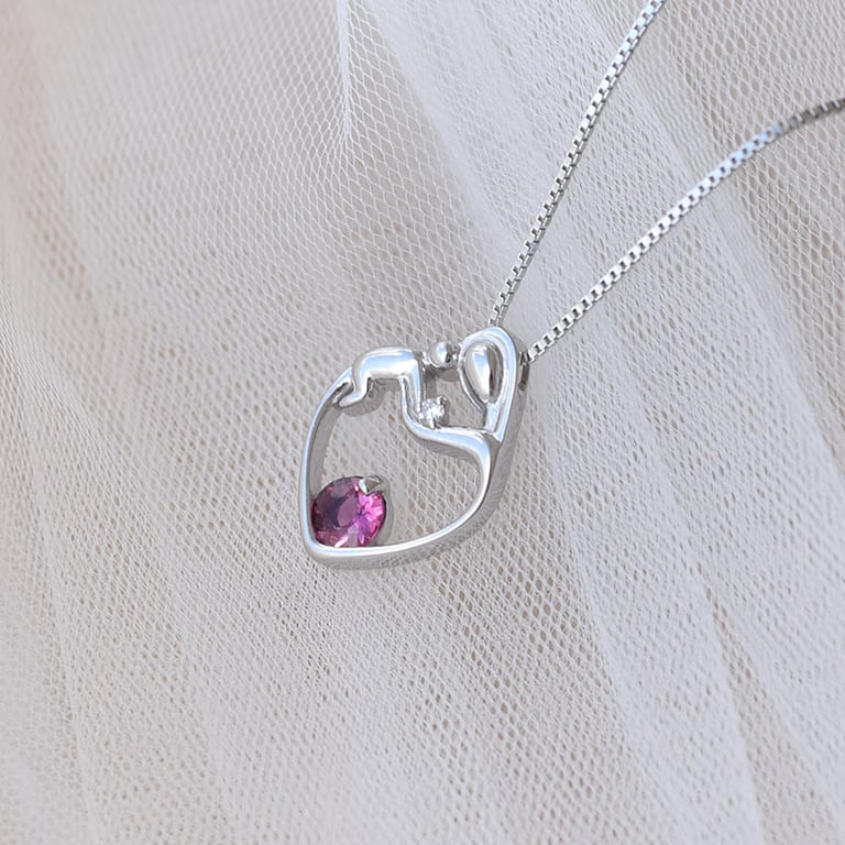 Silberner Anhänger Mutter und Kind mit Turmalin und Diamant Ella