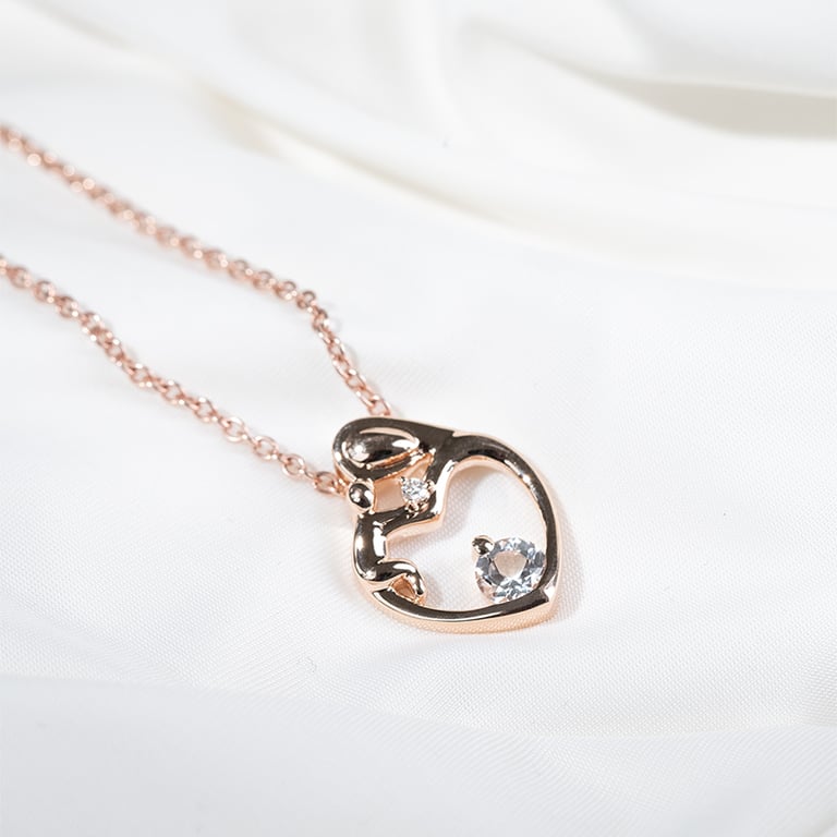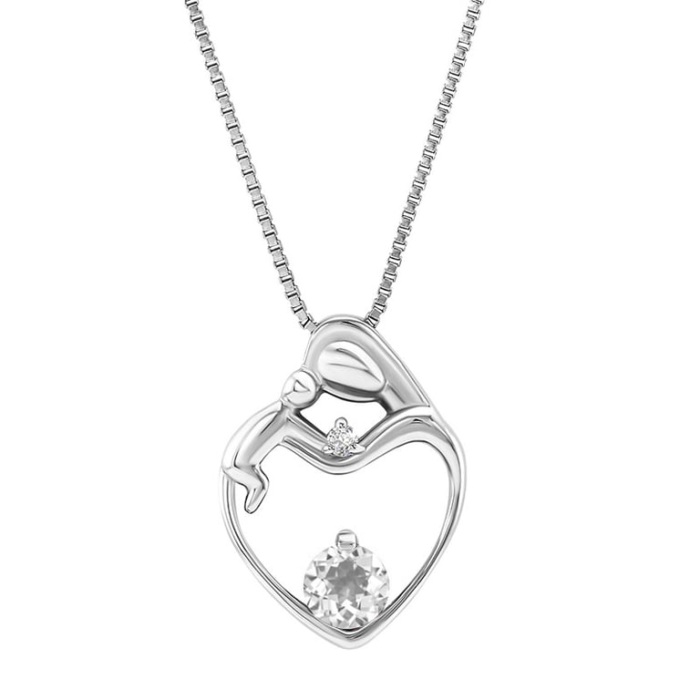 • das wunderschöne Design einer Mutter, die ihr Baby hält, wird durch einen leuchtenden weißen Topas und einen Diamanten verziert