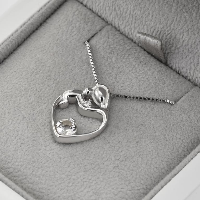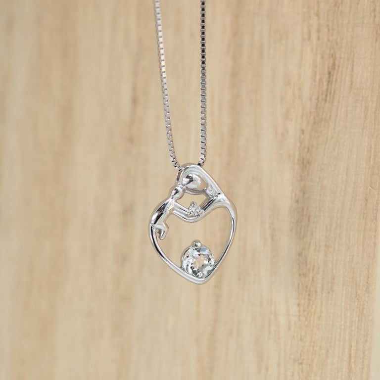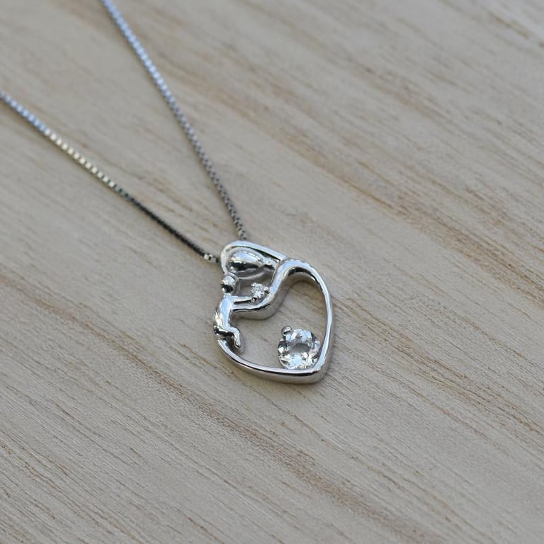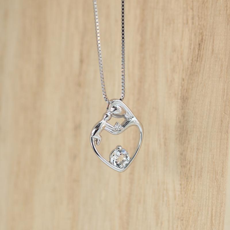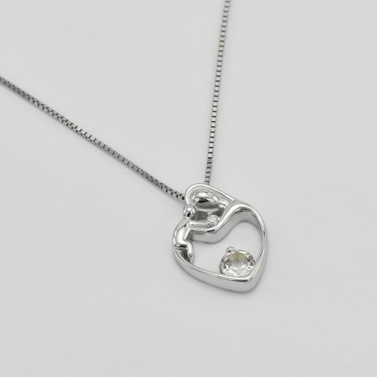 Silberner Anhänger Mutter und Kind mit weißem Topas Ella