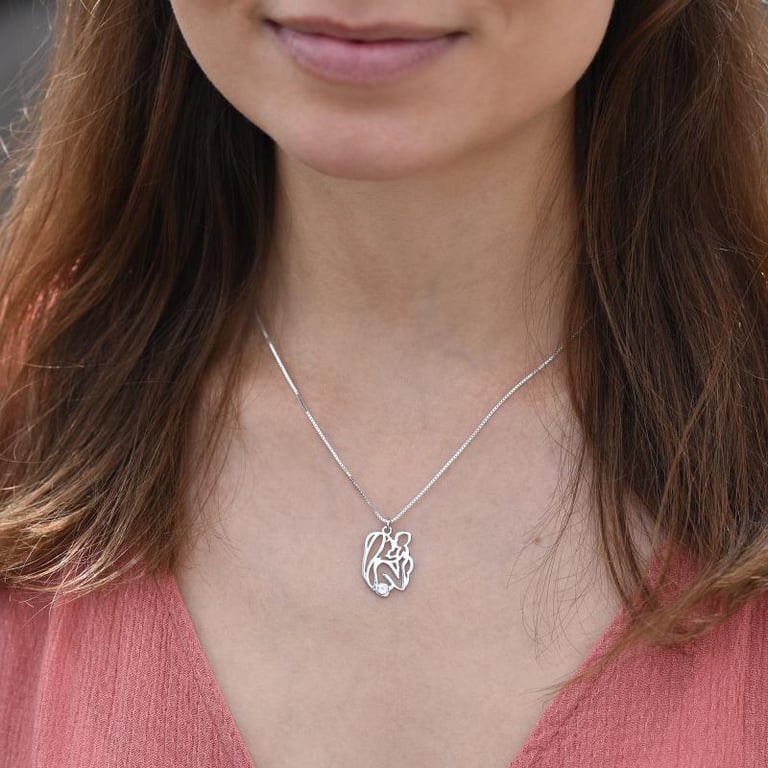 Silberner Anhänger Mutter und Kind mit weißem Topas Rian