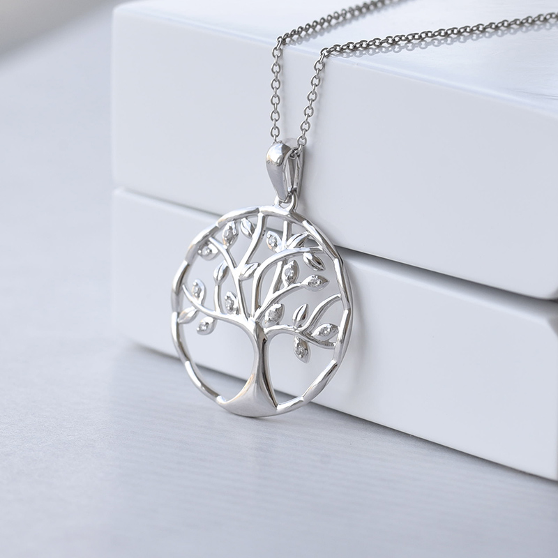 • ein wunderschöner Schmuck in Form des Lebensbaums, der den Glanz des Silbers mit dem Funkeln der Lab Grown Diamanten verbindet
